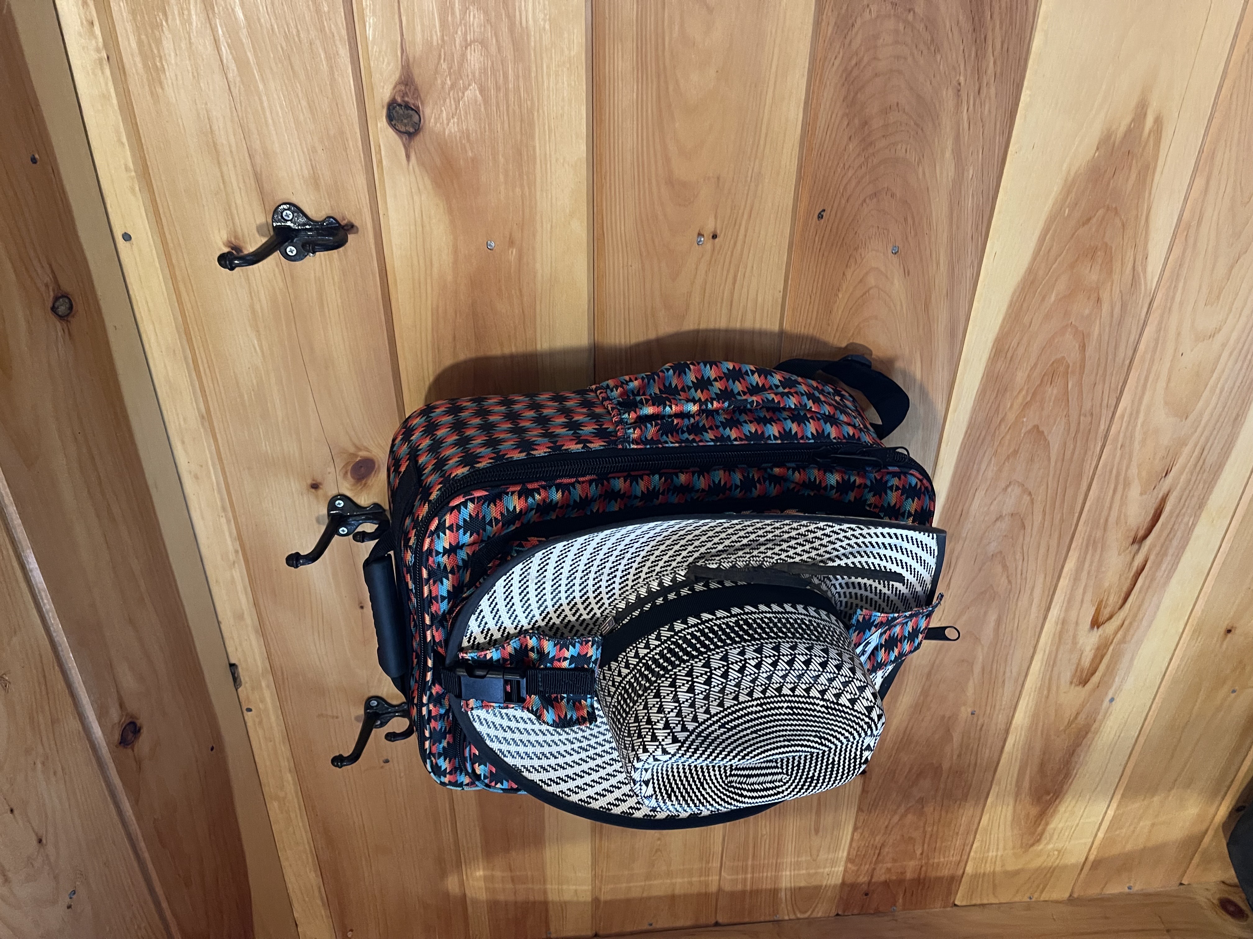Featuring 2 main storage compartments - find a hidden zipper in the main area as well as hidden strap to carry your cowboy hat as well.