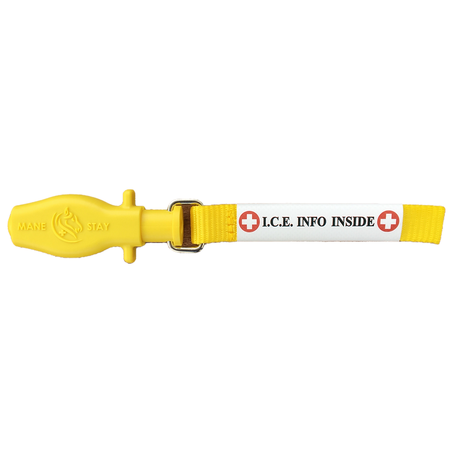 In an extreme emergency such as fire, hurricane, tornado or flood, when every second counts, ManeStay (Patent Pending) is your Go-to Method to Quickly, Safely and Securely attach VISIBLE identification to horse, mule or donkey in literally just 3 seconds.