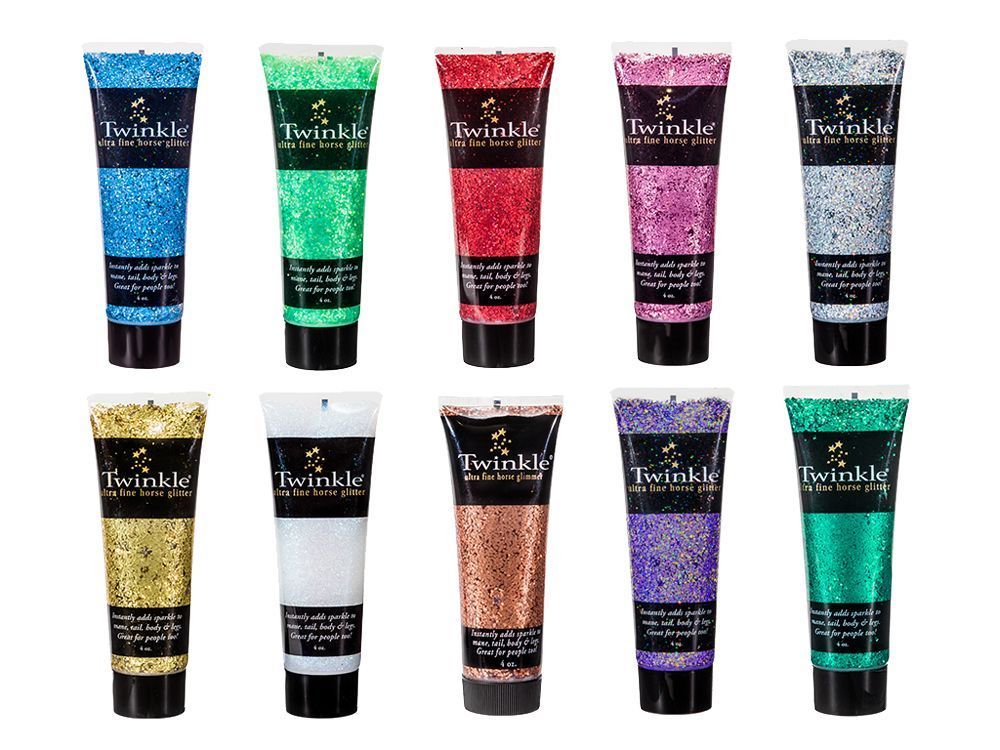 Twinkle Ultra Fine Horse Glitter. This amazing glitter gel is oil free and instantly adds sparkle to any mane, tail, body, legs and braids. Great for people as well!